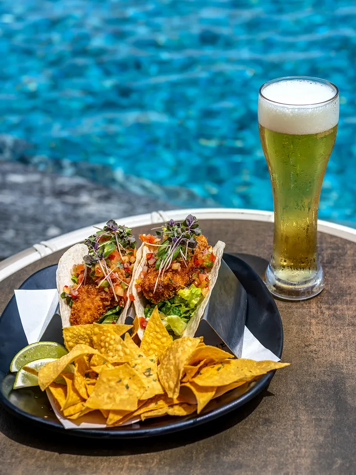 Situated right next to the infinity pool, guests can enjoy drinks and light bites while soaking in the serene sea views and gentle breezes. A guest favorite is relaxing in the pool on the dedicated water chairs, fully immersed in the tropical ambiance for a truly indulgent experience.