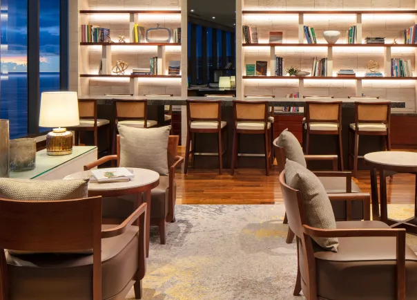 落ち着いた雰囲気のクラブラウンジで、夕暮れのひとときを彩るカクテルアワーを。季節のカクテルや軽食を楽しみながら、ゆったりとした時間をお過ごしいただけます。
